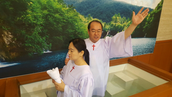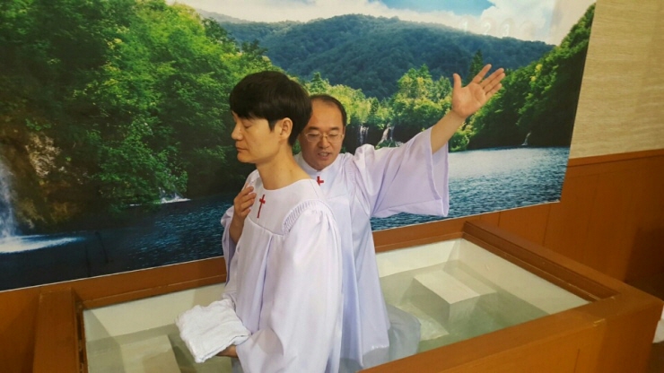 침례 받는 정재학 형제