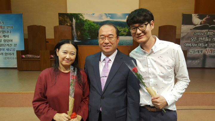 침례를 마치고 기념 촬영했습니다. 침례 받으신 두 분께 축하를 드립니다.